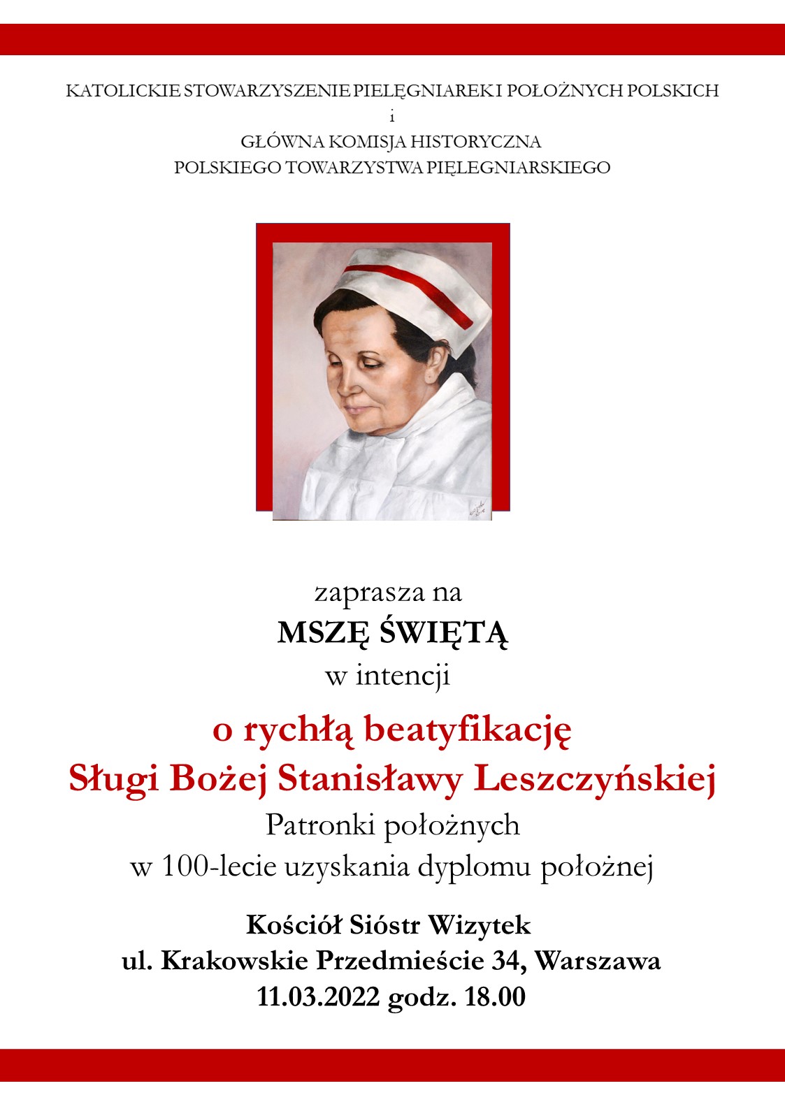Zaproszenie na Mszę Świętą w intencji rychłej beatyfikacji Sługi Bożej Stanisławy Leszczyńskiej – patronki położnych.