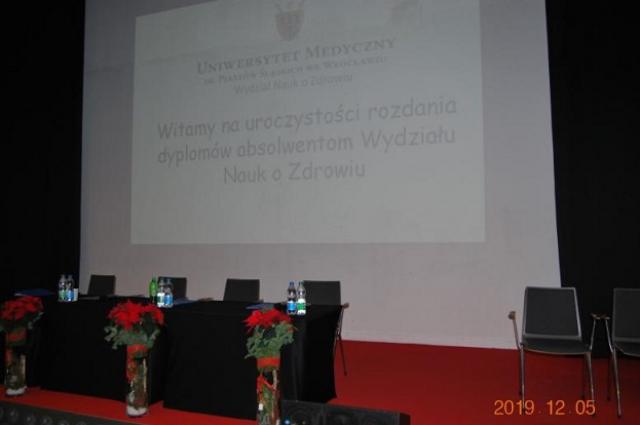 UROCZYSTE WRĘCZENIE DYPLOMÓW UKOŃCZENIA STUDIÓW WYŻSZYCH ABSOLWENTOM WYDZIAŁU NAUK O ZDROWIU UNIWERSYTETU MEDYCZNEGO IM. PIASTÓW ŚLĄSKICH WE WROCŁAWIU 6 GRUDNIA 2019
