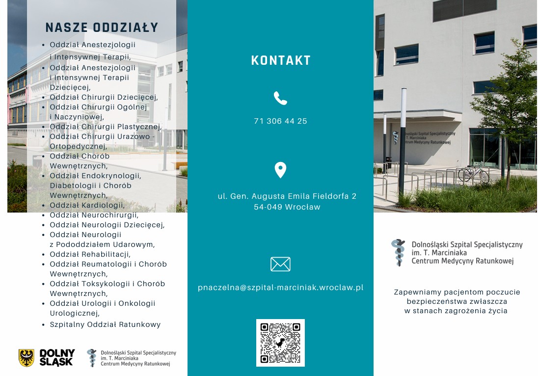 18 marca 2026 23 marca 2026 Dolnośląski Szpital Specjalistyczny im. T. Marciniaka Centrum Medycyny Ratunkowej ul. Gen. Augusta Emila Fieldorfa 2, 54-049 Wrocław KONTAKT: Tel: 71 3064425 e-mail: pnaczelna@szpital-marciniak.wroclaw.pl Share the post "Dolnośląski Szpital Specjalistyczny im. T. Marciniaka Centrum Medycyny Ratunkowej" FacebookXShare…