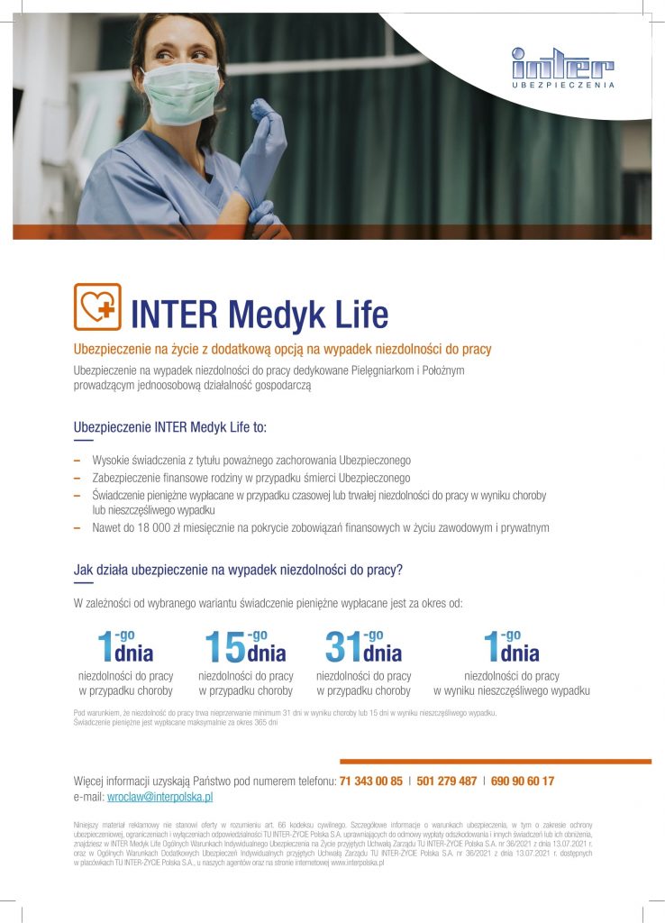 INTER Medyk Life – ubezpieczenie na życie z dodatkową opcją na wypadek niezdolności do pracy dla pielęgniarek i położnych prowadzących jednoosobową działalność gospodarczą