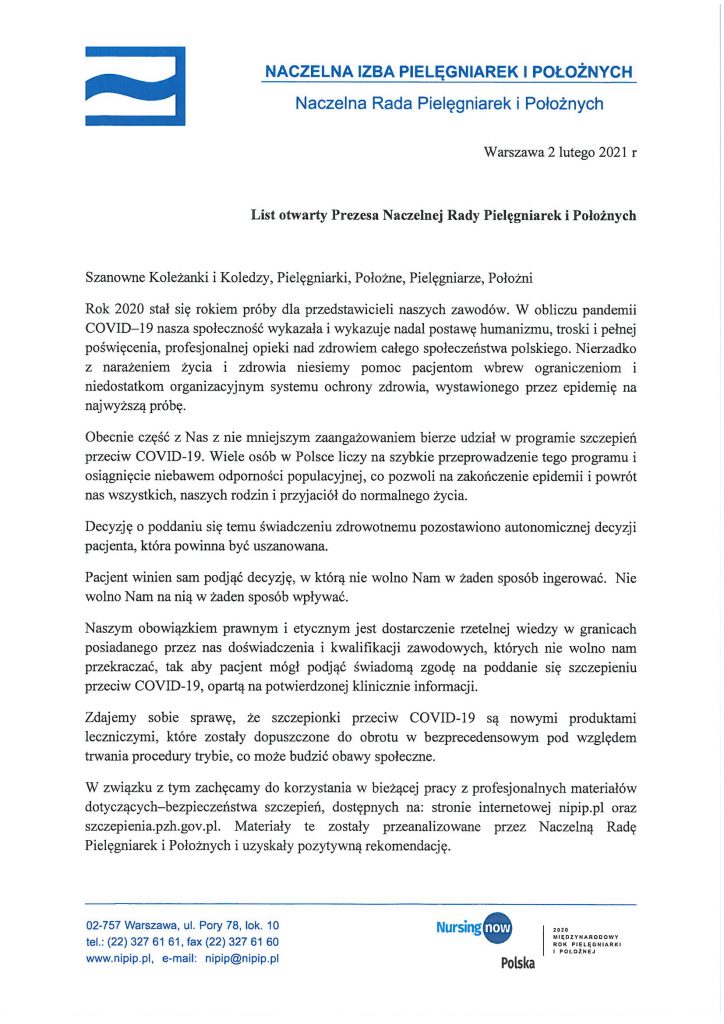 8 lutego 2021 8 lutego 2021 List otwarty Prezesa Naczelnej Rady Pielęgniarek i Położnych z dnia 02 lutego 2021r. Share the post "List otwarty Prezesa Naczelnej Rady Pielęgniarek i Położnych z dnia 02 lutego 2021r." FacebookXShare…