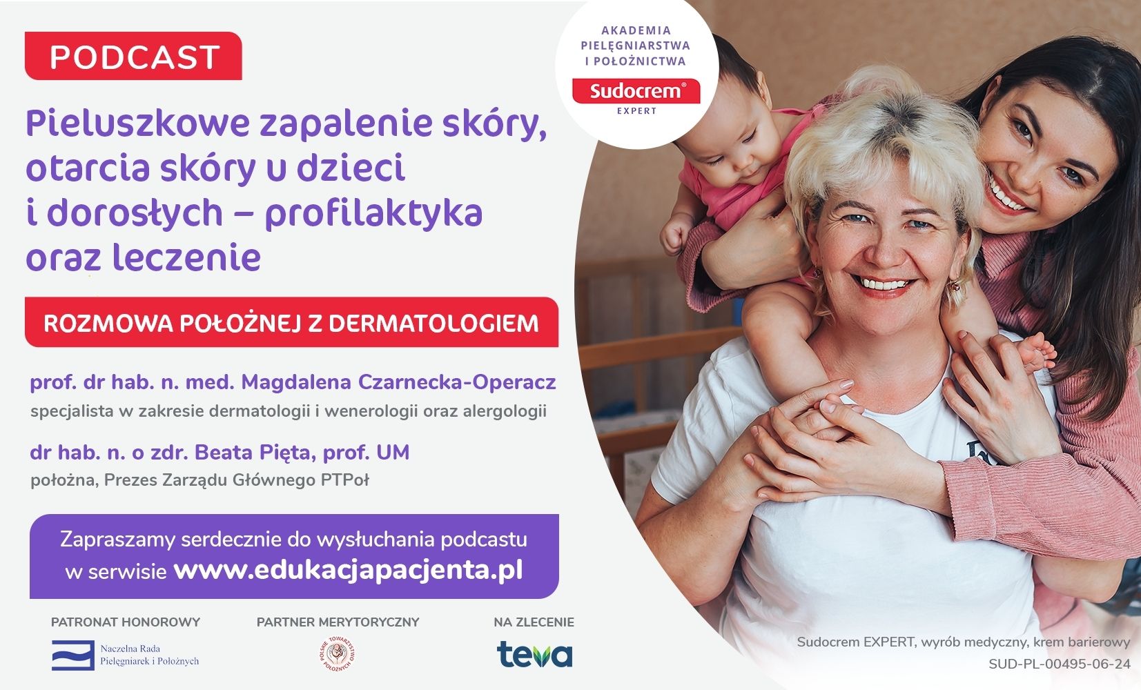 Zapraszamy do wysłuchania podcastu na temat pieluszkowego zapalenie skóry i otarć skóry pojawiających się powszechnie u dzieci i dorosłych. Skóra, jako nasz największy organ, wymaga szczególnej troski i uwagi, zwłaszcza w przypadku takich problemów jak pieluszkowe zapalenie skóry u najmłodszych oraz otarcia skóry u osób w każdym wieku. Podczas rozmowy przybliżymy najlepsze metody profilaktyki oraz skuteczne sposoby leczenia tych uciążliwych dolegliwości. Naszymi gośćmi są eksperci z dziedziny dermatologii i położnictwa, którzy podzielą się swoją wiedzą i praktycznymi wskazówkami. Dowiecie się, jak dbać o skórę, aby uniknąć problemów, oraz jakie kroki podjąć, gdy już się pojawią. Zapraszamy do słuchania!