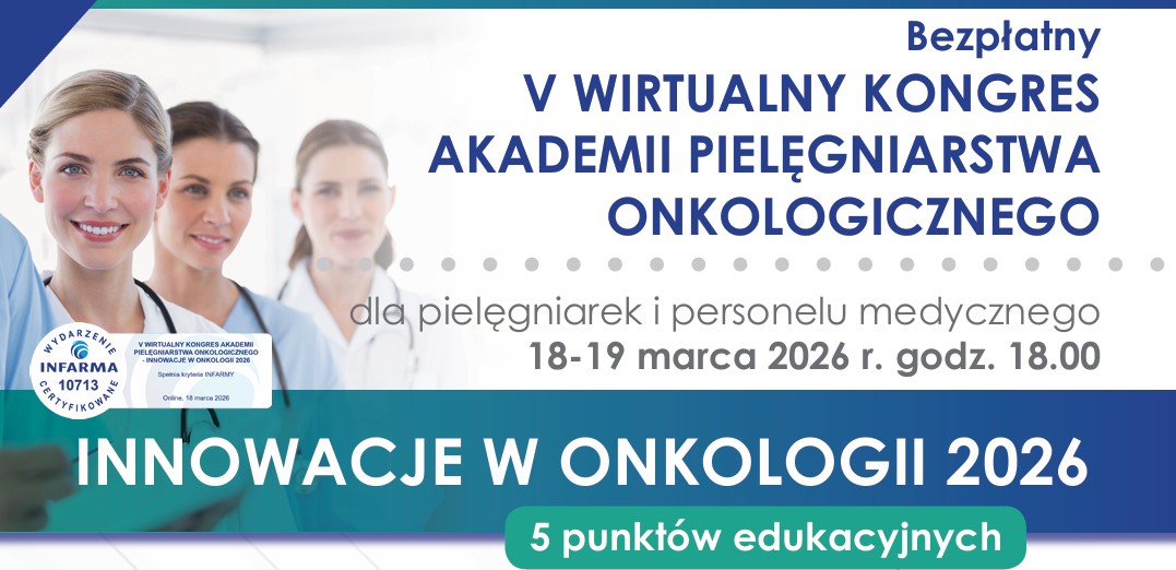 Zapraszamy do bezpłatnego udziału w dwudniowym V WIRTUALNYM KONGRESIE AKADEMII PIELĘGNIARSTWA ONKOLOGICZNEGO – INNOWACJE W ONKOLOGII 2026 dla pielęgniarek i personelu medycznego, która odbędzie się w dniach